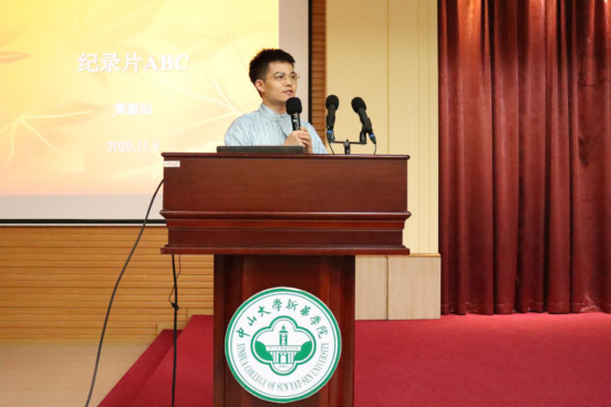 学院主办,艺术设计与传媒学院承办的纪录片《一对德国父子的客家传奇》赏析暨导演交流会在东莞校区定静楼讲学厅举行。本次讲坛由2018级网络与新媒体专业(以下简称“网新”)专业主任、纪录片导演黄慰汕担任主讲人,艺术设计与传媒学院院长兼党总支书记蔡照波、副院长周国屏、办公室主任潘倩莹、团委书记陈捷云出席交流会。网新专业班主任汪文超主持。网新专业各年级学生参会学习。