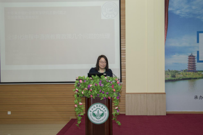 20日上午,吉林大学公共外语教育学院院长潘海英教授委托董晓宇老师代为作题为“10年来中国社会语言学研究主要问题综述”的报告。中国社会语言学会理事、中山大学外国语学院丁建新教授主持论坛。