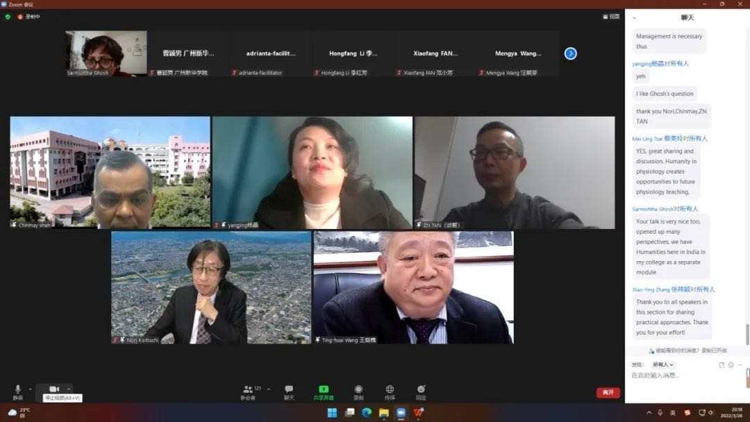 会上,我校药学院副院长曹颖男博士代表学校向河北医科大学的杨晶教授作发言提问:Professor Yang,I would also like to ask a question: How to master the integration of medical humanities elements in physiology teaching?杨晶教授作了深入细致的回答,并引发了与会人员的热烈讨论。