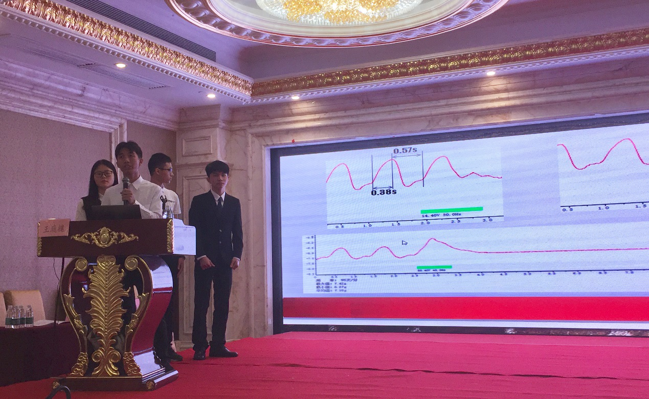 邓宝娣助教及邹鑫、吴润鑫、钟晓明同学上台展示实验探究结果