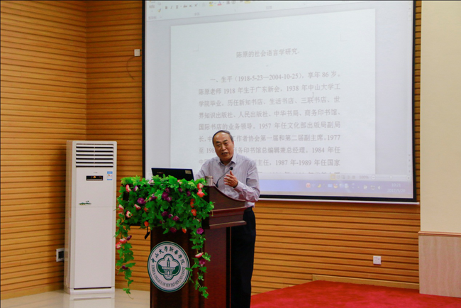 教育部语言文字应用研究所研究员、中国社会科学院苏金智教授作题为“陈原先生的社会语言学研究”的学术报告