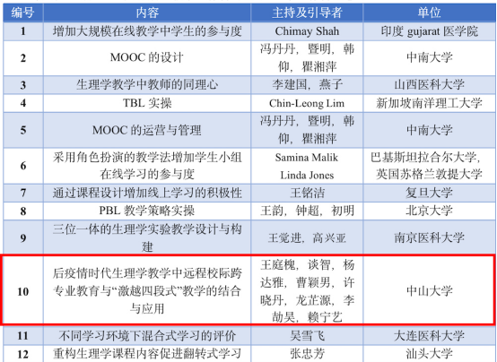 这项教学改革在线下实施取得较好的实践效果。2021年6月,由国家教学名师、我校校长王庭槐教授发起的线上跨四校多专业“激越四段式”教学STEP4成果展示与分享,首次在钉钉在线课堂成功开展。248名来自中山大学中山医学院、