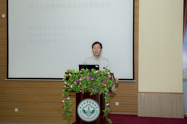 陈建平从“语言学及应用语言是什么”、“社会语言是什么”、以及“跨文化机构语篇研究是什么”三个方面向我们阐明了机构话语研究、中外高等教育机构话语体系比较、机构语篇研究的重要性和高等学校自我塑造身份方法等相关内容。