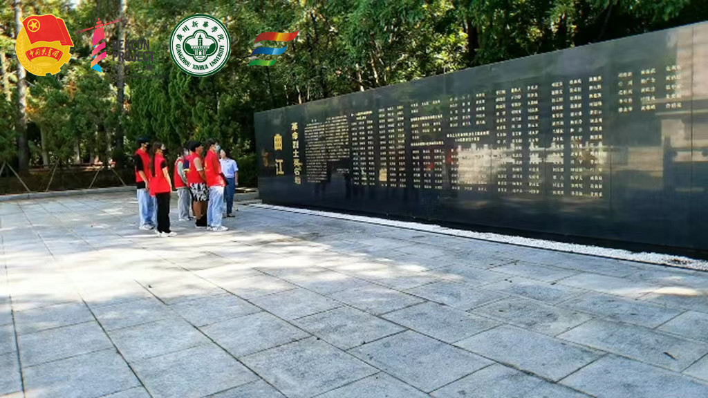 曲江革命烈士陵园是韶关市爱国主义教育基地。陵园内绿树成荫,环境幽静肃穆,既有扑面而来的生机感,更有历史的沉重感,实践队全体成员们怀着崇敬的心情缓步走上台阶,前去祭拜革命先烈。
