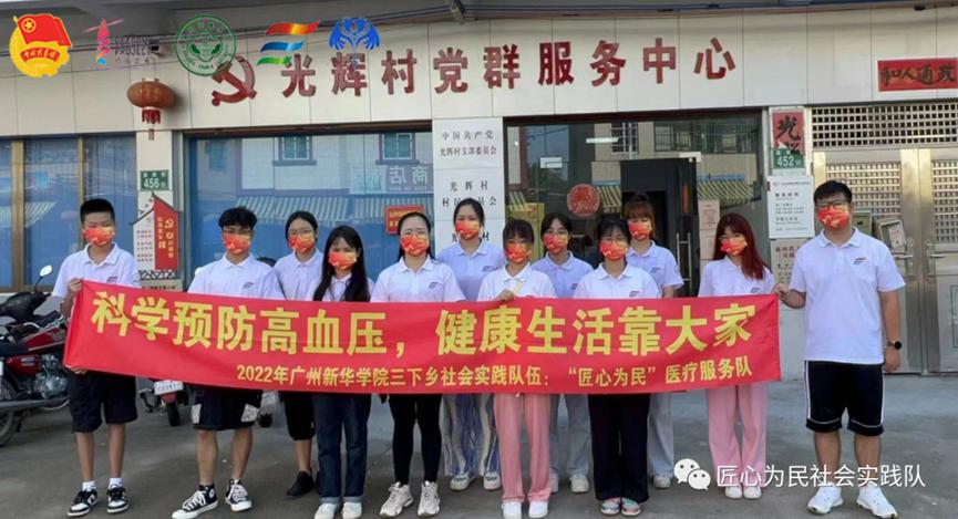 “匠心为民”医疗服务队(以下简称“实践队”)于8月22日赴广州从化区光联村以及光辉村开展了以“医影系民心,匠心从化行”为主题的社会实践活动。本次三下乡活动与“百校百号乡村行”高校-青年文明号-南方医科大学南方医院健康管理科结对,通过宣传、上门服务等形式向当地居民普及高血压的危害,提高当地居民对高血压的防范意识以及重视高血压的危害。