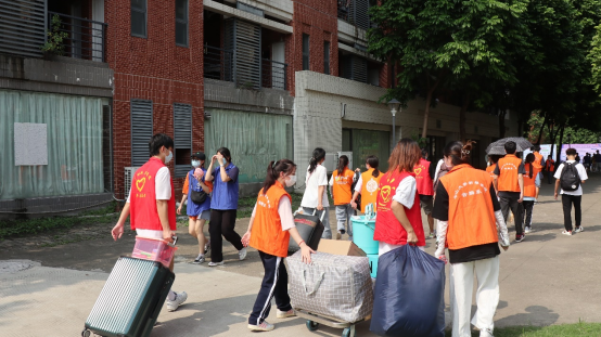 随着新生们的到来,迎新点的报到工作正火热进行着,尽管汗水湿透了大家的衣衫,但志愿者们的服务热情丝毫不减。宿舍楼里、校道上到处都是志愿者们忙碌的身影,学长、学姐们热情地接过新生们的行李,为他们耐心讲解报道流程、指引路线。从室内到室外,为新生们提供全程“一站式服务”,让新生们从踏入校门的那一刻起就感受到学院大家庭暖暖的关怀。