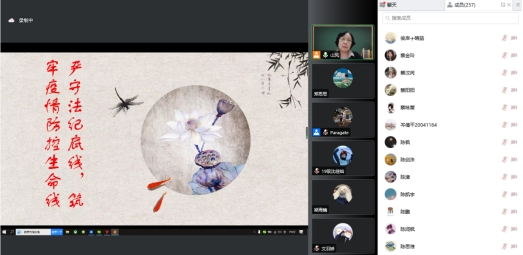 李岚表示,“守纪律,讲规矩”是我们每一位同学必须履行的行为准则,坚守底线也是每一位“法律人”的行为准则,敬畏法纪是“法律人”的道德底线,严明律己是我们做人做事的根本,并从法科生的角度让听课师生们了解了疫情防控中违法法规的行为。