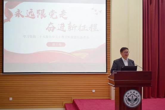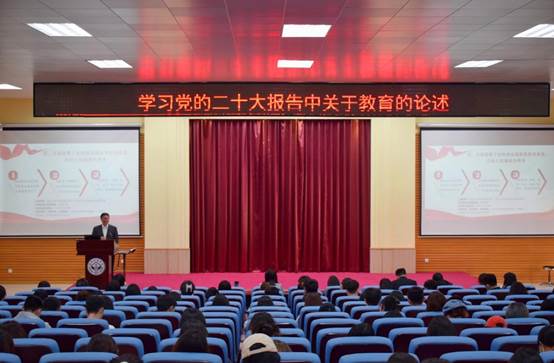 (以下简称“我校”)公共治理学院开讲主题为“学习党的二十大报告中关于教育的论述”的新学期思政第一课。本次讲座由公共治理学院党总支书记、院长徐文俊主讲,公共治理学院两百余名师生到场学习。公共治理学院党总支副书记刘艳芬主持讲座。