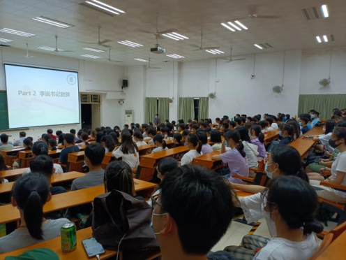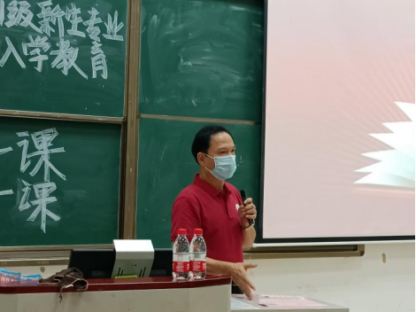 李正华院长为新生讲授主题为“讲原则、守规矩、正风气”的开学第一课。首先,李正华以一个富有哲理的故事拉开了课程序幕,并就如何在大学四年里养成良好的秉性,掌握专业的学习方法以及培养社会需要的能力这三个方面进行了详细的讲述。在分享过程中,李正华对新生提出了坚定政治信仰,做人向上向善,遵守学校规章制度这三点基本要求。随后,李正华从日常学习生活、人际关系、维护集体荣誉等与大学生活息息相关的方面,分享了做人有情有义、做事有始有终、学习有方法的观点。