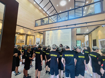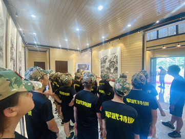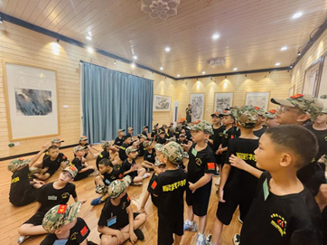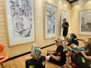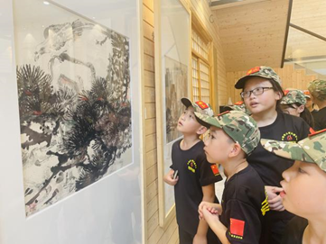 (以下简称“学校”)联合广东省人民政府文史研究馆和广东省许钦松艺术基金会共同举办的“何止青绿——岭南当代名家山水画毕业季精品特展”如火如荼进行中。8月7日,学校霖霖书院迎来了一抹特别的绿色——塔山军武道军事夏令营的“小小兵”,他们被霖霖书院展出的名家山水画深深吸引,专程前来参观。
