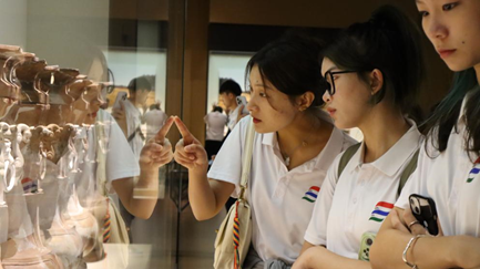 队员仔细参观文物