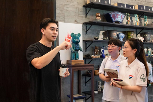 为了更深入地体验陶塑瓦脊工艺的魅力,实践队队员亲自参与到手工制作陶塑中。何湛泉与其女何晓桦亲临现场指导,并与队员分享制作陶塑的经验与陶塑故事。在陶塑过程中,队员们需要不断地调整形状和位置,才能让手中的泥土捏塑成型。从中实践队员深切感受到,创意固然重要,但要想制作出优秀的陶艺品,更需要有耐心、细心与敬畏心。只有保持不断学习探索、精益求精的匠人精神,才能创作出独具特色的陶塑作品。