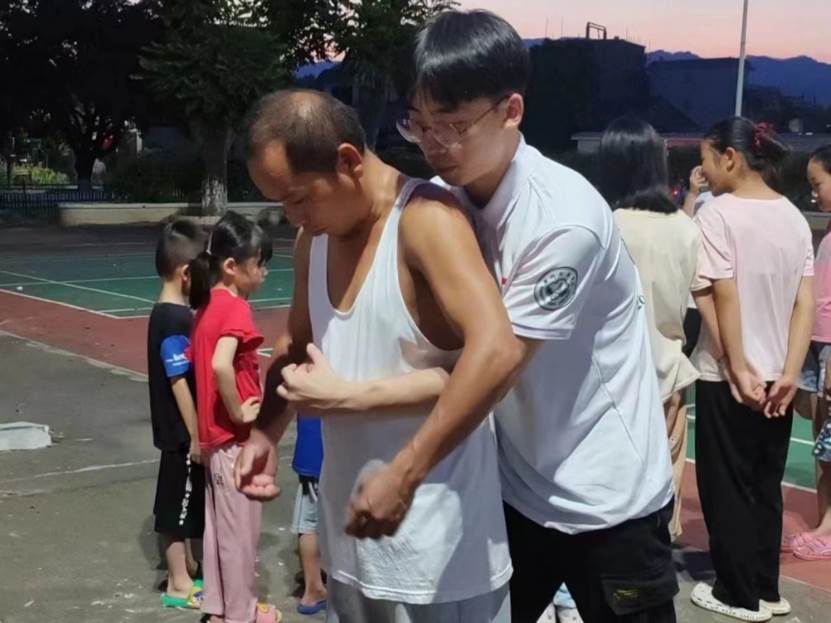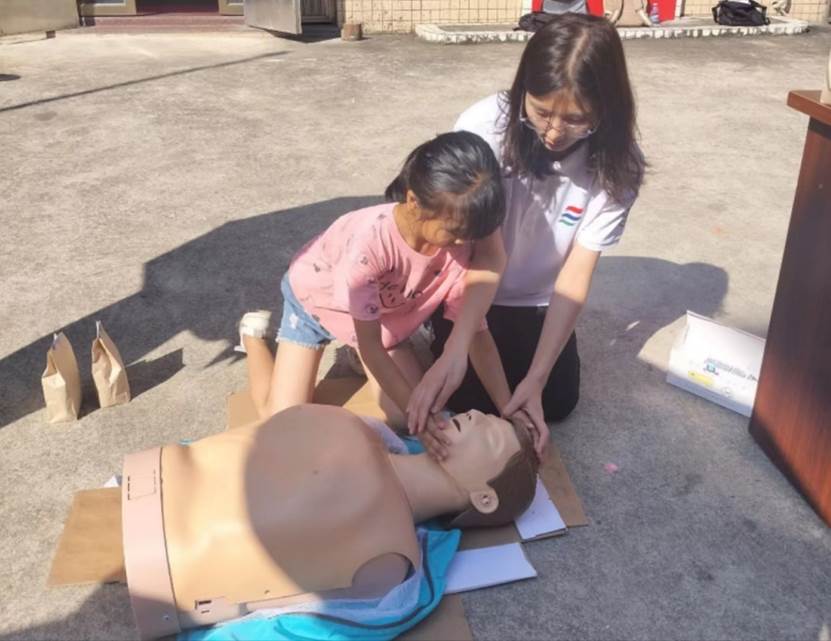 实践队员为居民介绍了心肺复苏的方法,展示了正确的按压位置和按压频率,并演示了如何进行有效的人工呼吸,详细讲解了窒息的危险和解除窒息的急救方法——海姆立克法的正确操作手法。在实际演练中,参与者学会了如何正确施压,帮助窒息者恢复呼吸畅通的技巧。