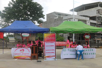 医疗服务队在郁南县第二人民医院开展脊柱侧弯筛查活动,重点对当地小中高学生进行筛查,并向当地家长们介绍早期预防青少年脊柱侧弯的意义。