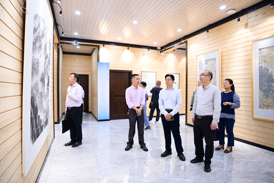 在学校领导的陪同下,潮州市政协、东莞市政协一行走进学校霖霖书院,观赏了霖霖书院近期展出的“艺览山海在明明德——广东省高校美术学院院长作品展”,他们对霖霖书院作为学校美育交流平台所发挥的育人作用表示赞许。