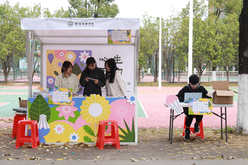 活动现场,工作人员有条不紊地布置现场,向同学们讲解健康知识,引导同学们形成健康的生活方式。经过的同学们被宣传摊位吸引,不约而同驻足观望。