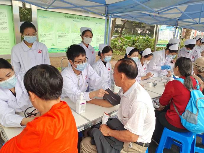 护理学院教工党支部、护理学院学生党支部、护理学院团委、青年护梦志愿服务队携手广东省护理学会产业发展工作委员会、广州市凤凰街社工服务站、天河区精神康复服务中心,在天河区火炉山森林公园北门广场联合举办火炉山健康服务活动,弘扬和践行雷锋精神,为健康中国建设贡献