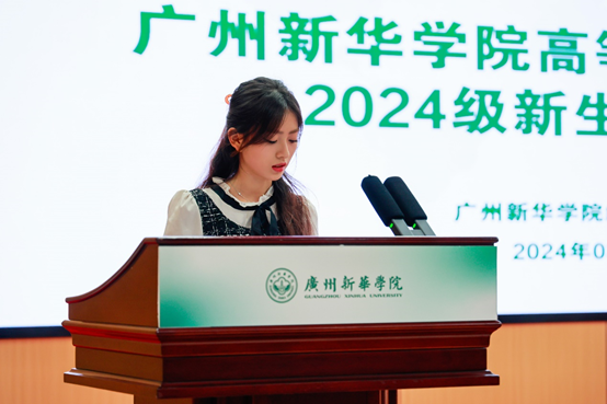新生代表庞燕婷分享了自己的备考历程,表达了对大学生活的期待和憧憬,并承诺将珍惜大学时光,努力学习,用知识和智慧武装自己,以更加饱满的热情和更加坚定的信念,迎接未来的挑战和机遇。