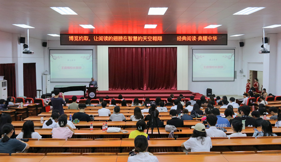图书馆第十四届读书系列活动“经典阅读·典耀中华”第八届读书分享交流案例大赛决赛拉开帷幕。活动邀请了学生处副处长陈丽、中国语言文学系党总支副书记杨帮琰、信息与智能工程学院副书记帅莉、经济与贸易学院党总支副书记李丹、音乐系党总支副书记童秀萍、公共治理学院党总支副书记刘玉漩、外国语学院党总支副书记邢佳佳、校团委学生社团科长刘佳兴担任评委。