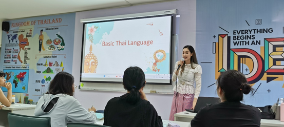 泰国巴吞他尼大学老师Ajarn Kung给学生讲授基础泰语课