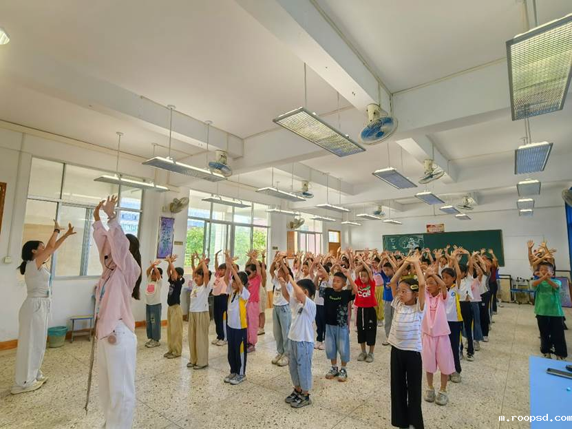 7月11日至7月18日,在队员的带领下,学生们踏上了一场丰富多彩的美育探索之旅。学生们在软笔、硬笔书写课中感受笔墨与纸张的互动;在绘画课上体验油画棒绘画、作品欣赏等多种类型的内容;剪纸课中带领学生走进剪纸的世界,领略中国传统剪纸的艺术魅力;舞蹈课程上支教队员带领学生进入舞蹈的世界,体验舞蹈带来的自信与优雅;在太极课程上,学生们通过舒缓的动作和呼吸练习感受传统太极的平静之美;主持、朗诵课程学习内容涵盖发音技巧、语言表达、情感传达等方面,旨在培养学生的语言表达能力,展现自己的语言才华;在诗歌音乐创作课程上,支教队员引导学生将诗歌以音乐的方式唱出来,让学生深入体验诗歌与音乐的韵律美、和谐美,同时让学生到室外进行采风并创作诗歌,这是美育课程设置的特色。