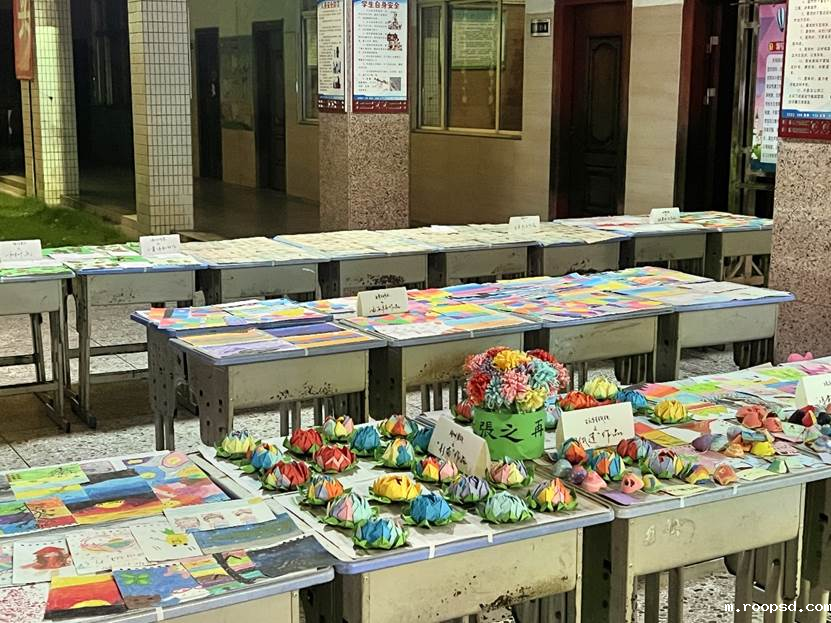 7月19日,为了进一步推动美育在乡村学校中的普及和发展,实践队在北山小学开展美育作品展,展出学生们在支教学习期间的成果,其中涵盖了来自不同课程的数百件作品,形式包括绘画、手工艺品、诗歌创作等,充分展现了孩子们的创造力与想象力。