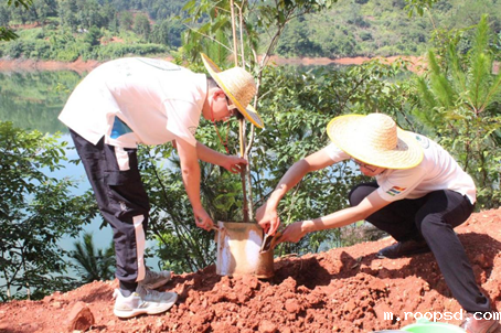 日月光潭下实践队成员在潭下镇239省道旁植树
