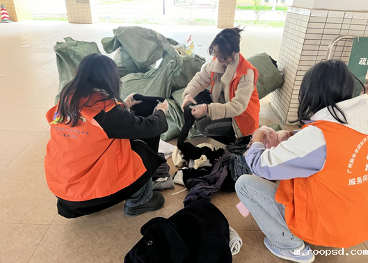 党员同志们和志愿者们对衣服进行整理