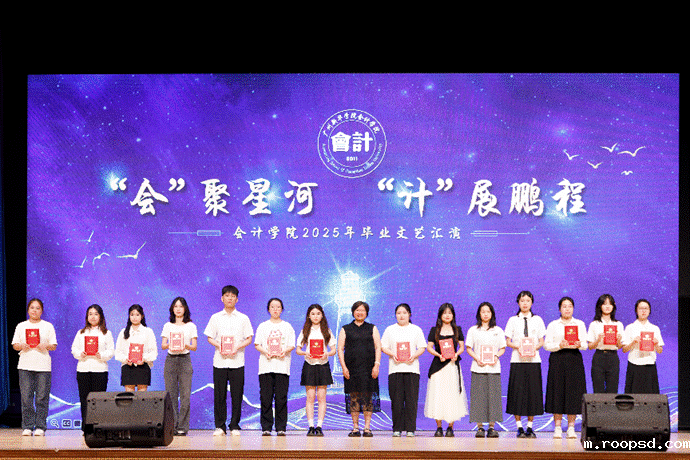 “会”聚星河,“计”展鹏程。本次文艺汇演不仅为会计学院毕业学子送上师生们对于他们最真挚的祝福,更彰显了会计学院始终坚持以立德树人为根本任务,培育德才兼备、全面发展的优秀学子,树立优良的学院学风的决心。未来,会计学院将继续为“三全育人”“五育并举”体系建设做出不懈努力,让美育之花绽放于校园之中,让学子风采展现在舞台之上。