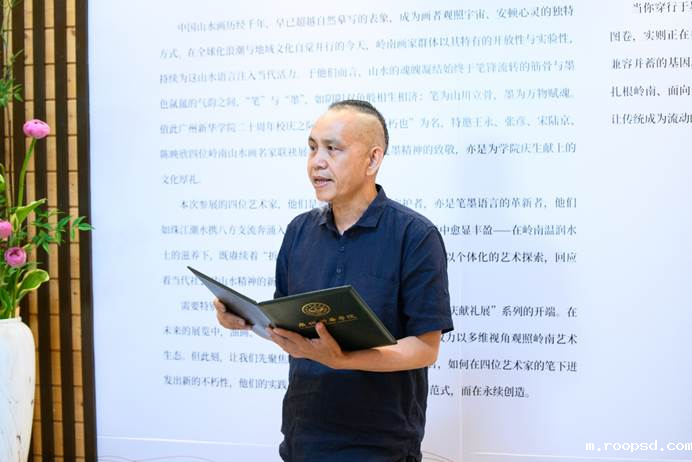粤港澳大湾区美术家联盟山水画艺委会执行主任、广州大学美术学艺术与设计学院硕士研究生导师林沛锐在致辞中表示,中国山水画承载着千年文化基因,是中华民族精神世界的诗意表达。岭南画家群体以开放包容的胸怀和创新精神,为山水画注入时代活力。此次展览以“墨不朽也”为名,寓意对千年笔墨精神的敬仰和艺术永续创造力量的诠释。林沛锐期待以此次展览为起点,各方携手共进,推动山水画艺术传承与创新,繁荣大湾区文化艺术事业。