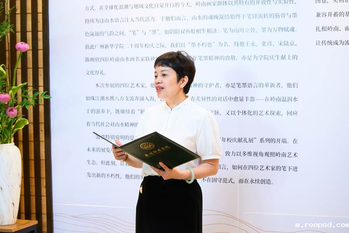 广东省许钦松艺术基金会秘书长方婷漫代表基金会向展览的成功举办表示祝贺。她提到,本次展览是作为伟德app入口建校20周年的重要活动之一,基金会携手各方共同打造这场艺术盛宴,以艺术之名为学校“庆生”。方婷漫表示,基金会致力于推动艺术教育、文化传承与创新,期待与学院在艺术教育等领域开展更深入合作,举办艺术讲座、创作工坊等活动,让艺术走进生活。