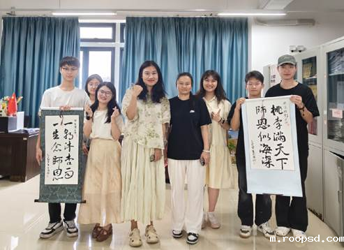 为深化教师节系列活动内涵,除了与老师合影外,中国语言文学系的同学们还准备感恩教师节的心意礼物,余涛同学亲笔书写“师恩似海深,桃李满天下”,通过传统书法艺术载体传递学子赤诚之心,彰显新时代尊师重教新风尚。