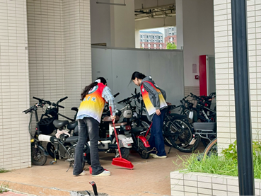 追光志愿服务队的同学们积极投身校园志愿活动,以整理单车、清扫落叶等看似细微的举动,为校园注入文明与温暖的力量。这些看似不起眼的“小事”,将校园的文明与温暖紧密串联起来。在他们的努力下,“志愿红”成为了广东降温天里校园中亮丽温暖的底色。