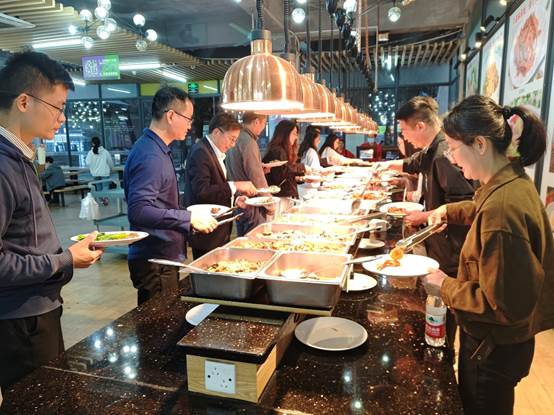 会后,校友们围坐学校食堂餐桌,品尝着熟悉的校园美食,畅谈大学时光的趣事逸闻,分享职场打拼的收获感悟。“还是当年的味道,一口就回到了四年前的校园生活”,一位校友感慨道。欢声笑语中,饭堂不仅成为味蕾的栖息地,更化作情感的纽带,让校友们在重温青春记忆的同时,加深了对母校的归属感与认同感。