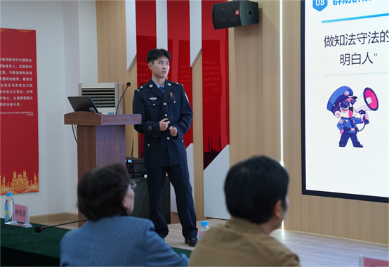 蒋继春围绕“青春不‘走私’:大学生避坑全攻略”主题进行宣讲。他以互动提问的方式切入,询问大家对走私的理解,借助亲身经历指明走私隐患就在身边,并从六大方面拆解了走私陷阱,提出“不贪、不信、不借、不帮”的防范要求,帮助同学们增强防范意识。他引用王阳明“知行合一,格物致知”的理念,勉励同学们要明法守法,远离走私陷阱。