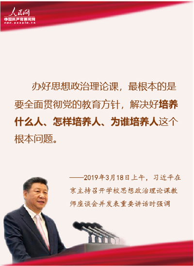 编者按:3月18日上午,习近平在京主持召开学校思想政治理论课教师座谈会并发表重要讲话。他强调,办好思想政治理论课,最根本的是要全面贯彻党的教育方针,解决好培养什么人、怎样培养人、为谁培养人这个根本问题。