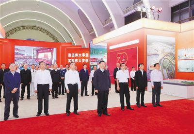 9月23日,党和国家领导人习近平、李克强、汪洋、王沪宁、赵乐际、韩正、王岐山等在北京展览馆参观“伟大历程 辉煌成就——庆祝中华人民共和国成立70周年大型成就展”。
