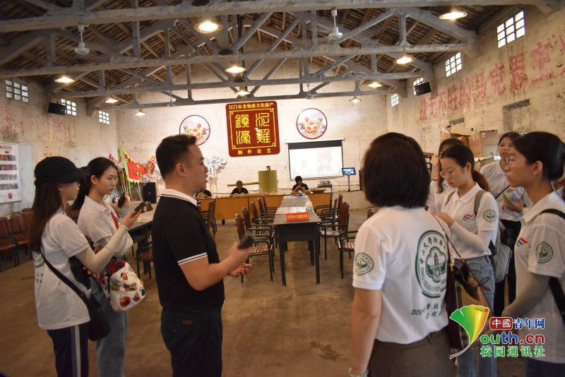 冯先生为队员们讲解“镇濠泥鸡”文化。中国青年网通讯员 曾志奋 摄