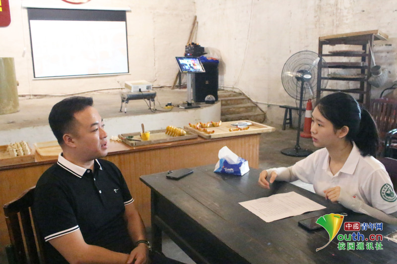 图为队员对冯先生进行访谈。中国青年网通讯员 曾志奋 摄