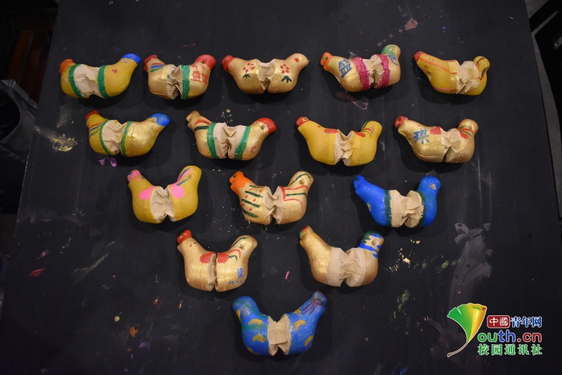 传承之路也需结合传统和创新,在传承非遗文化与精神的同时,适当地进行作品创新,创作一些满足当前社会流行趋势的非遗作品才是对非物质文化遗产的真正保护,只有让非物质文化遗产重新融入百姓劳动生活中去才是最好的保护。泥鸡的颜色原本是一个以黄色为主传统颜色,现在冯先生鼓励体验者们在泥鸡制作过程中,可以发挥自己的想象力,可以画出心目中的泥鸡。在原本传统的泥鸡模型的基础下,图形颜色等方面可以多元化,不仅可以拼色、画图案,还可以写文字上去,创造出不一样的、有意义的泥鸡。