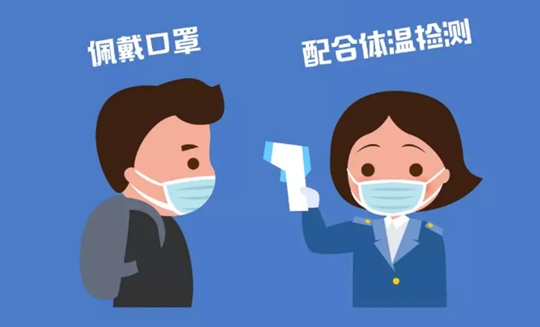 主动配合车站工作人员做好体温检测,缩短停留候车室时间。