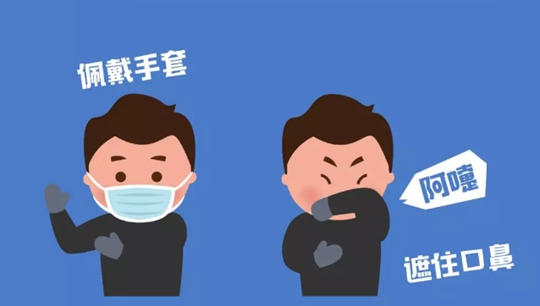 打喷嚏或咳嗽时,用纸巾或手肘衣服遮住口鼻。