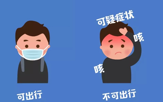 1、出行前,若无可疑症状(发热、咳嗽、咽痛、胸闷、呼吸困难、乏力、恶心呕吐、腹泻、结膜炎、肌肉酸痛等),可正常出行。