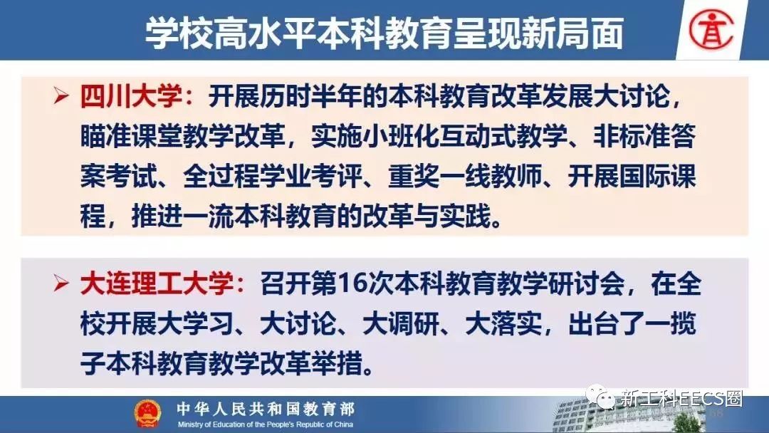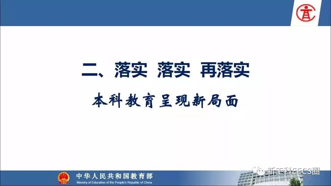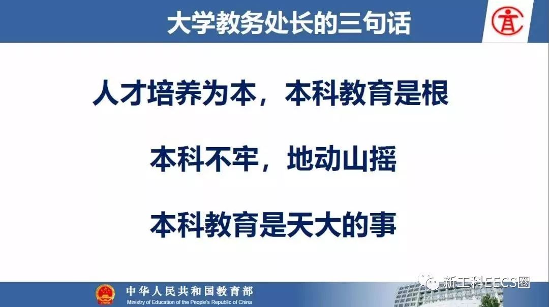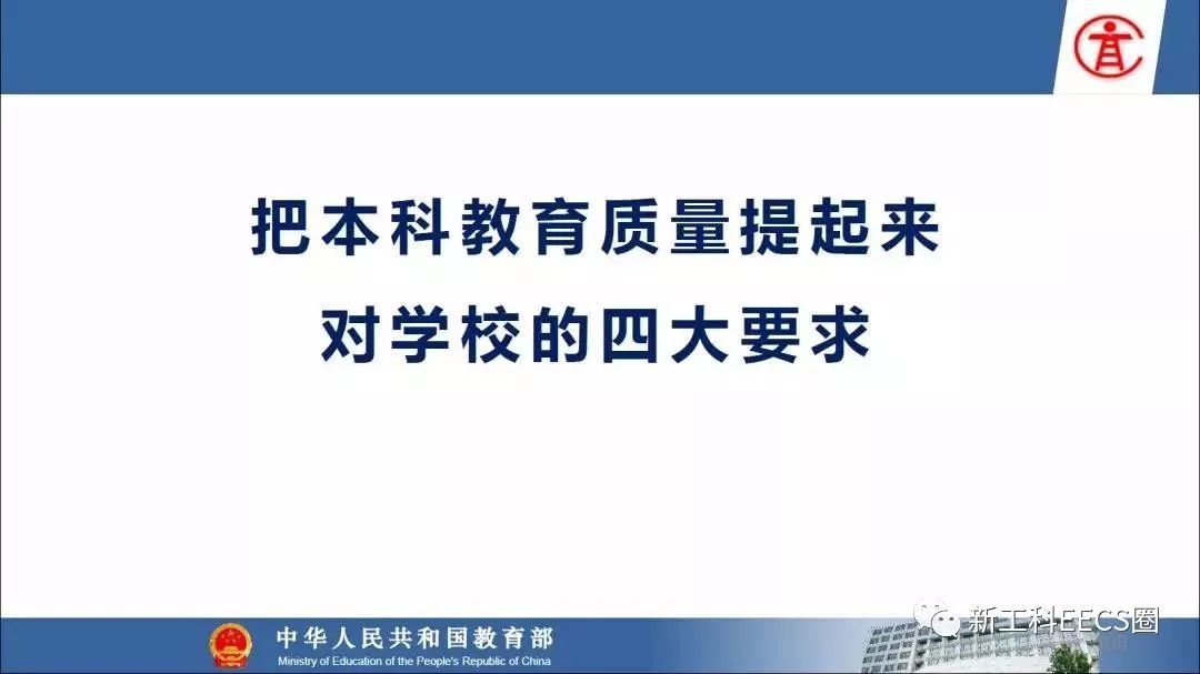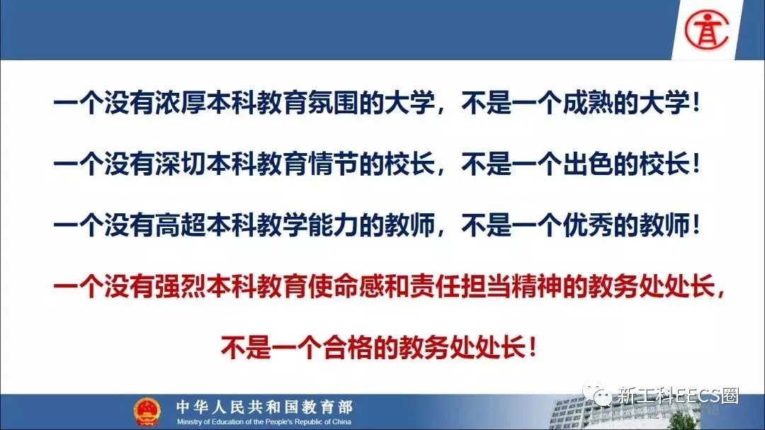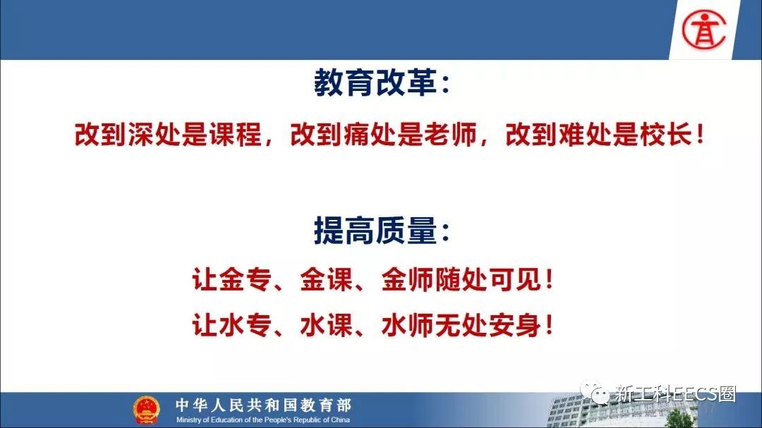 报告指出:要精准把握高等教育发展大势,超前识变、积极应变、主动求变;提到本科教育呈现新局面,“以本为本,四个回归”理念深入人心,“三个不合格、四个首先”得到有效落实;最后强调要通过一系列行动,把本科教育质量实实在在提起来,学校要狠抓教学改革,让金专、金课、金师随处可见!