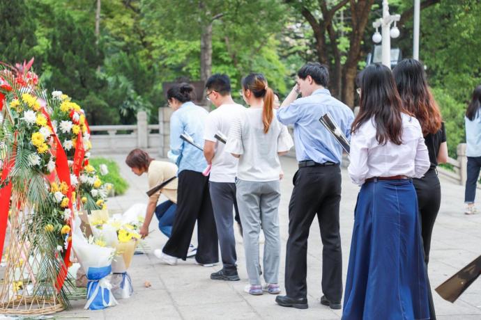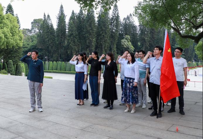 缅怀先烈,珍视和平,铭记历史,吾辈自强!在人事处处长简庚荣的领誓下,全体党员面向纪念碑举起右手重温入党誓词。最后,到场同志依次向革命先烈敬献鲜花,瞻仰烈士墓区。