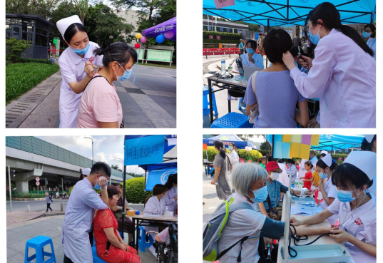4月24日我校志愿者在火炉上广场为群众开展艾灸、检查耳朵、按摩、测量血压等健康服务活动