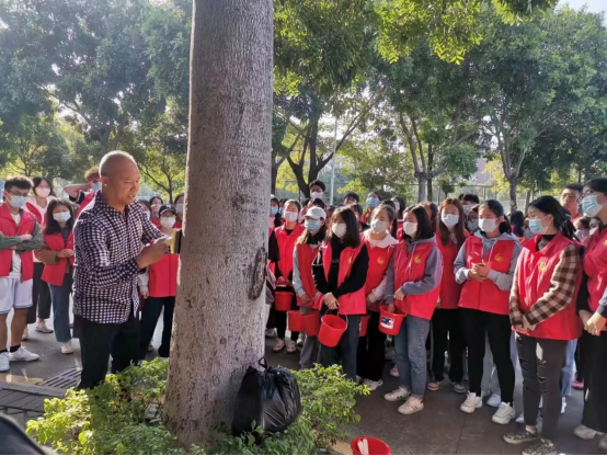 活动开始前,我校物业管理人员陈经理对参与本次活动的师生表示感谢,并耐心地讲解冬季树木涂白的重要性以及涂白养护的一些注意事项。