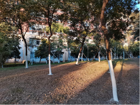 校园增添了无数暖意。在大家的共同努力下,教学区内的所有树木都穿上了“冬衣”,树木整齐划一、焕然一新,校园面貌变得更加美观,教学环境更加舒适亮丽。