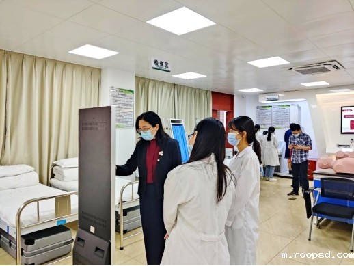 在活动中,健康学院师生联合党支部党员同志陈军为前来进行健康服务体验的教职员工介绍实验室相关设备,让大家更加了解健康服务与管理专业的实验室建设情况。