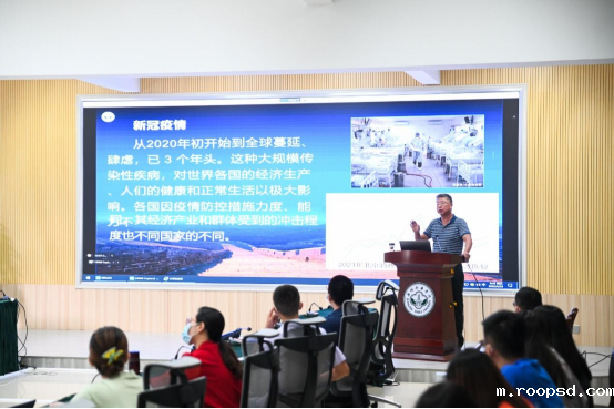 蔡鄂教授从当今世界的局势、如何理解“百年大变局”、我国国家安全面临的挑战三个方面进行分析阐述。面对世界百年未有之大变局,我们要更加紧密地团结在以习近平同志为核心的党中央周围,深刻领悟“两个确立”的决定性意义,进一步增强“四个意识”、坚定“四个自信”、做到“两个维护”,坚定不移听党话、跟党走,以实际行动迎接党的二十大胜利召开。